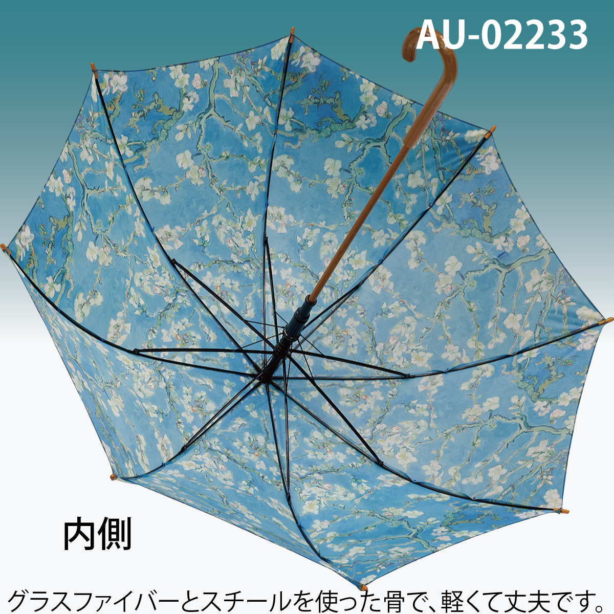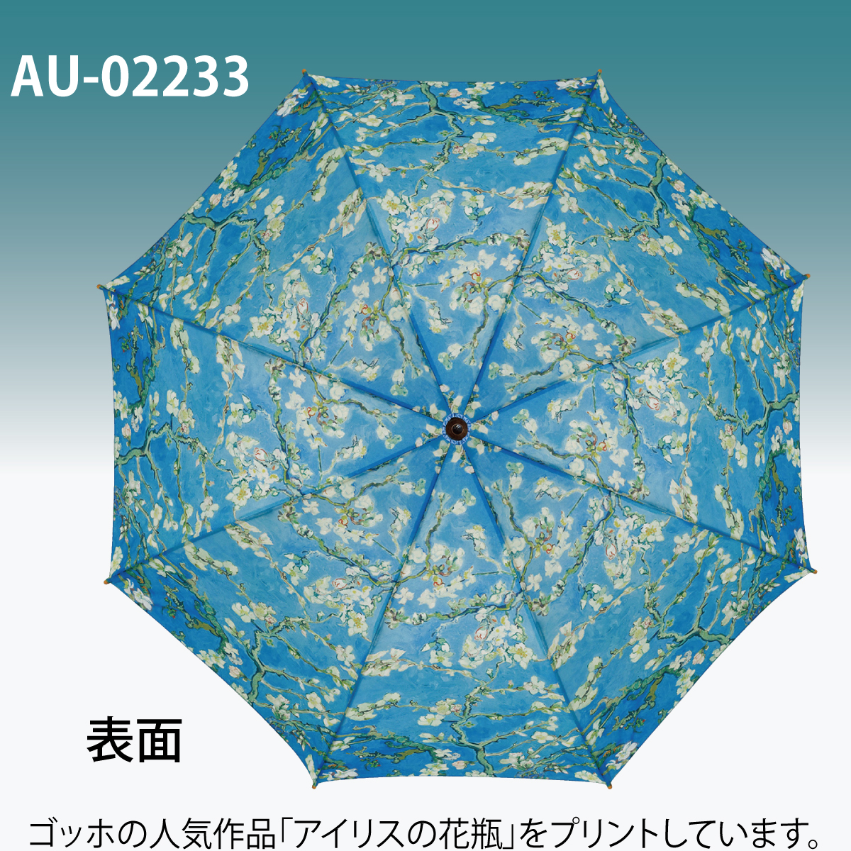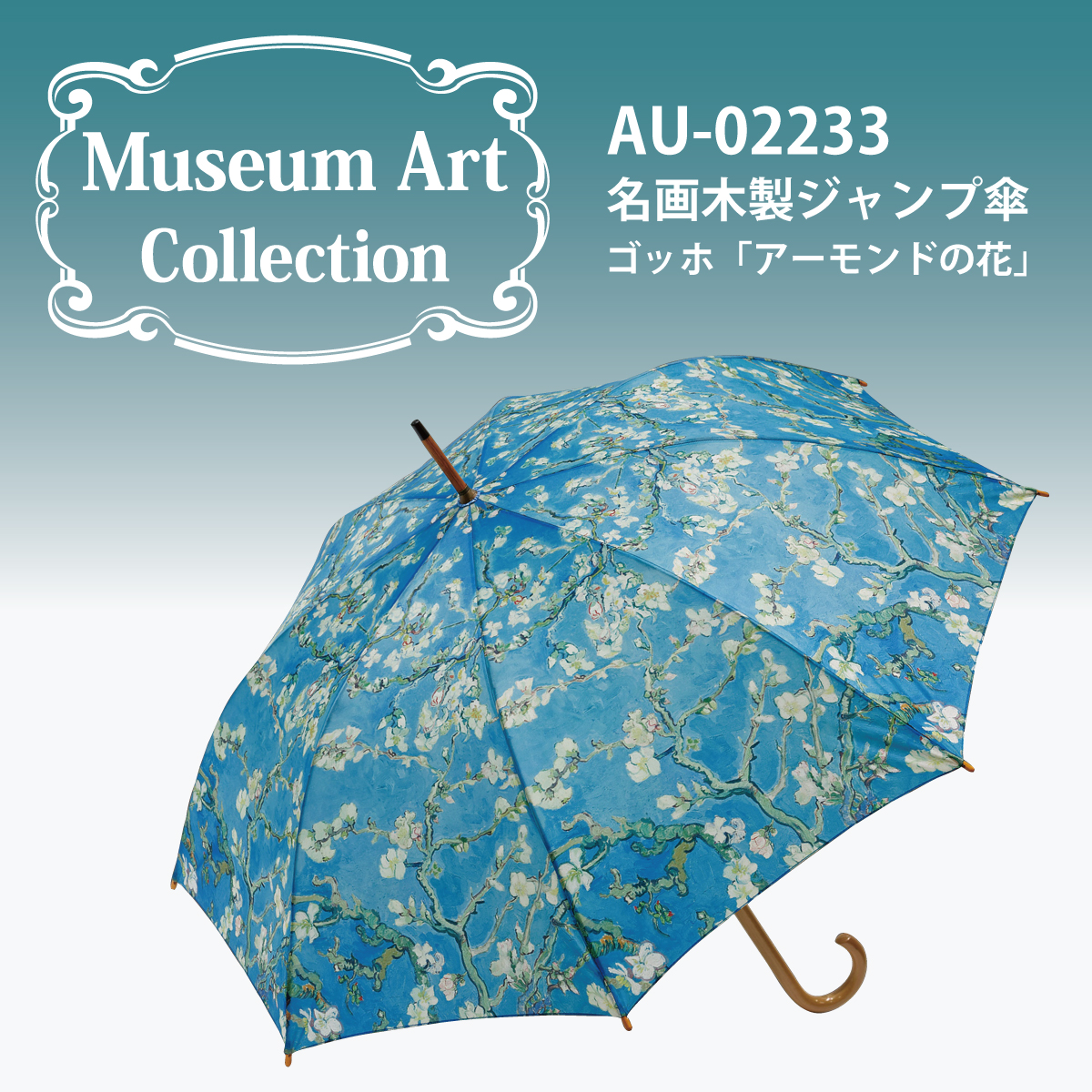 名画木製ジャンプ傘(ゴッホ「アーモンドの花」)