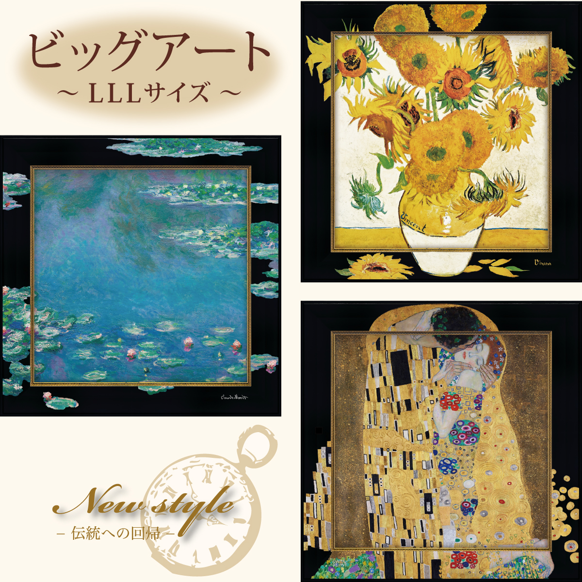 フレームと名画が一体になった迫力あるアート!モダンな黒いフレームで、お部屋をスタイリッシュに彩ります。いつまでも色あせないUVプリント仕上げです。