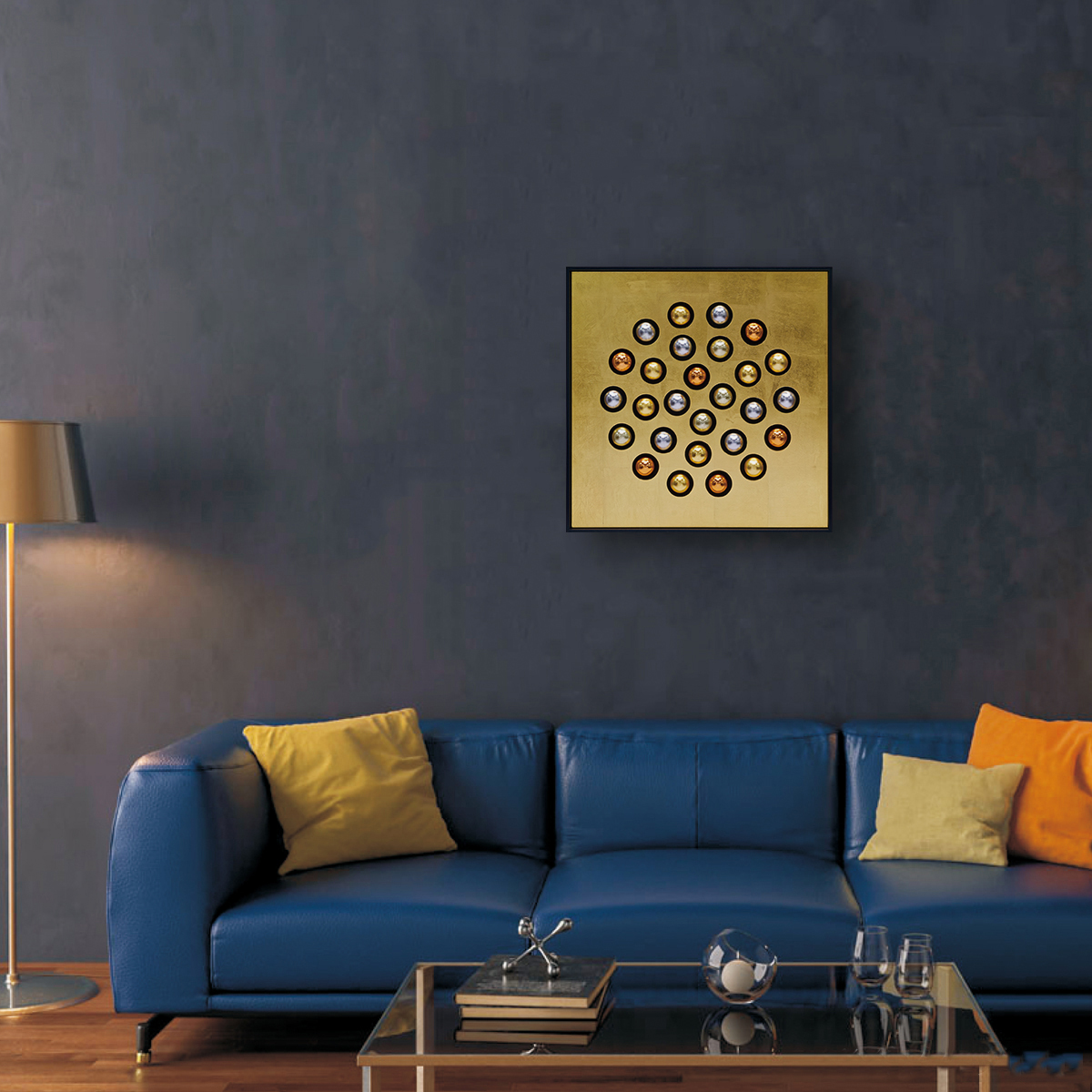 木やポリ樹脂等の様々な材料や、多くのゴールドを使い職人が一枚ずつ丁寧に作り上げた、デコラティヴなスペシャルウォールアート。