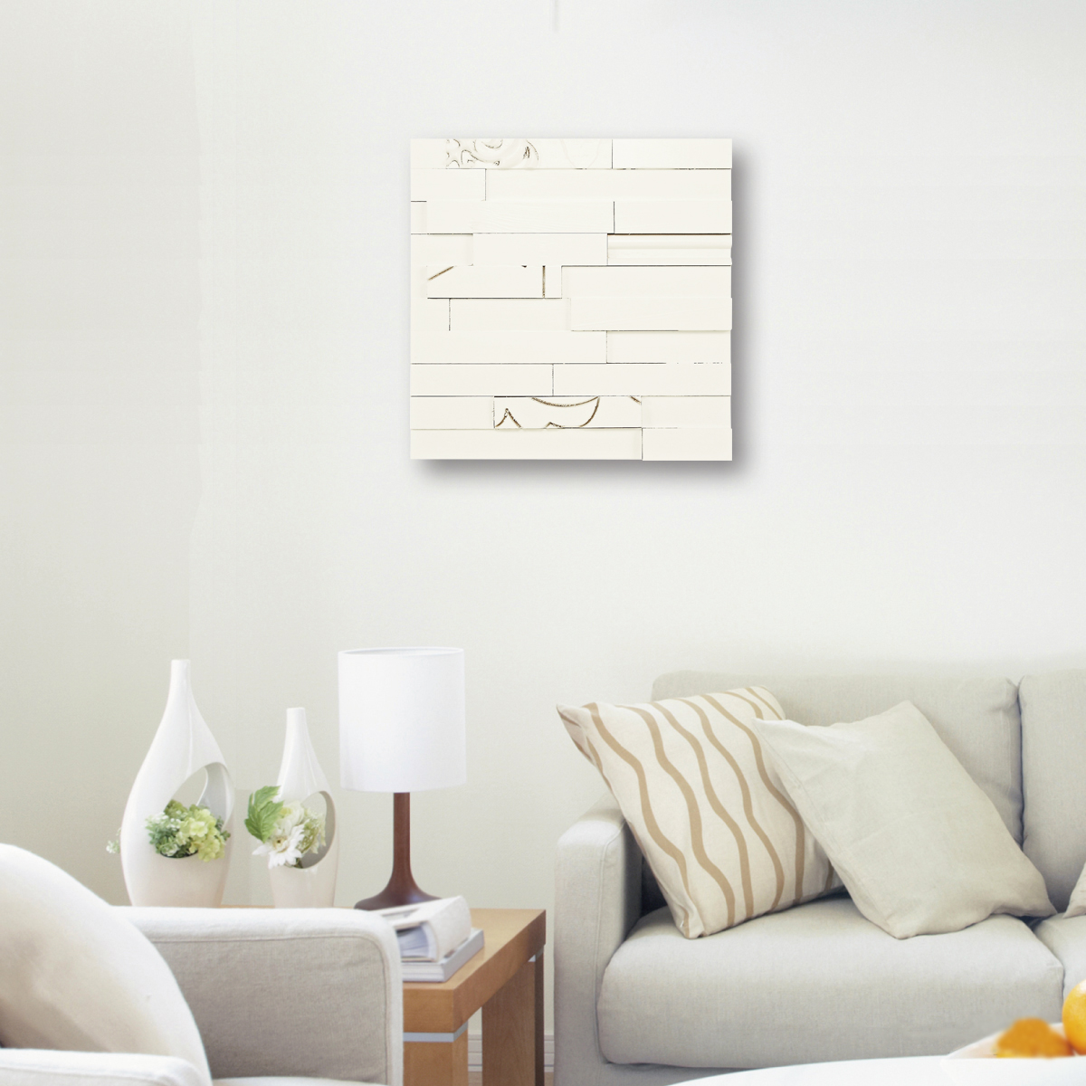 エキゾチックな天然木や高品質なMDFをチップ状にアレンジし、計算された段差や色の組み合わせにより生み出されるデザインは、ナチュラルとモダンの融合。※天然木やリサイクル材を使用しておりますので、写真とは色・風合いが異なる場合がございます。