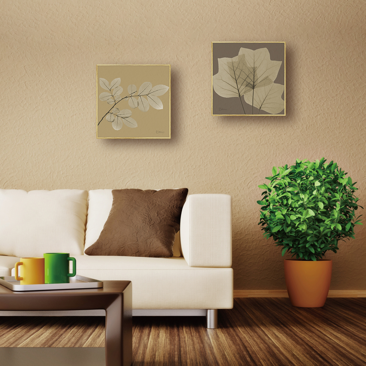 X RAY キャンバスアート「リーフ ブラウン3(スクエアS)」